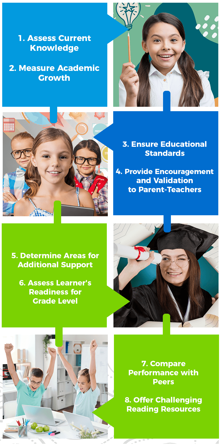 This dynamic approach precisely measures progress and growth, providing invaluable insights into your child's academic journey.